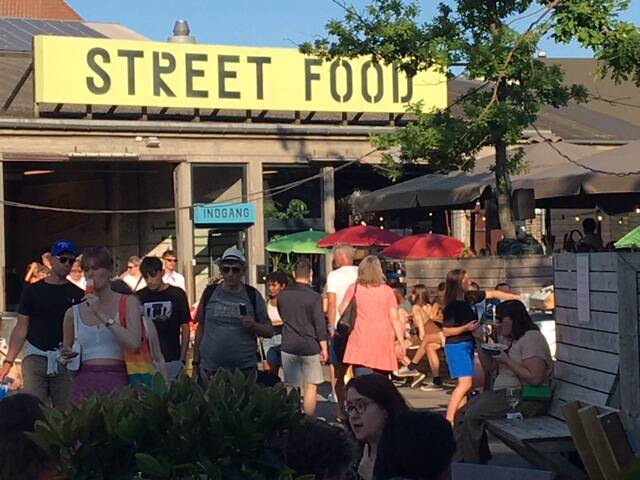Fürs Abendessen folgen wir einer kulinarischen Empfehlung und entdecken einen Street Food-Market ein, der dem hungrigen Besucher eine kulinarische Weltreise bietet. Man versorgt sich mit Essen und Getränken, macht es sich draußen auf Bänken und an Biertischen bequem und genießt das sommerliche Getümmel und den Duft nach internationalen Spezialitäten. Neben der wirklich schönen Location kann man hier relativ preiswert und überaus lecker essen.