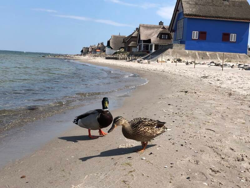 Wir erreichen nach 98 km (!) das Hotel Meeresrauschen - mehr Pension als Hotel, aber liebevoll und komfortabel ausgestattet. Die Räder können wir in einem eigens vorgesehenen Fahrradschuppen mit Stromanschluss abstellen und laden. Wir lassen uns fürs Abendessen einen Tipp von der sehr netten Besitzerin geben und schwelgen in einer Riesenportion Pannfisch.