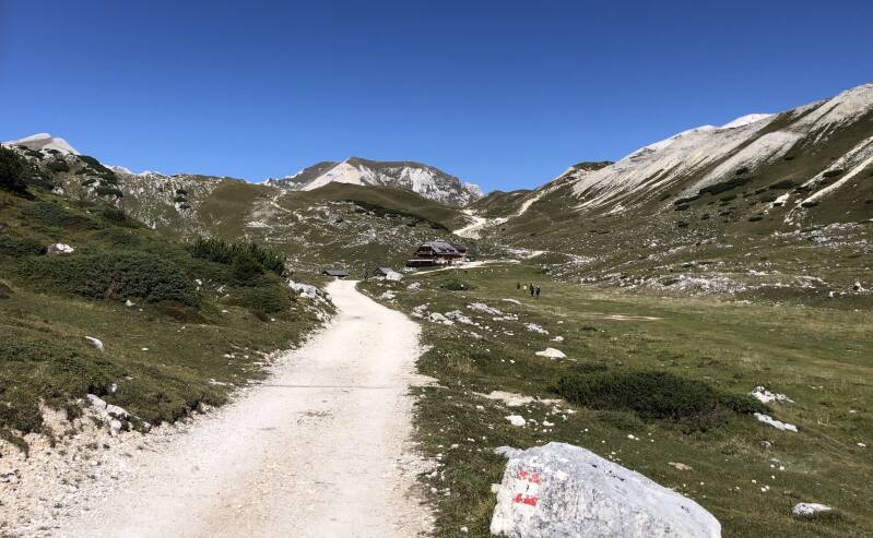 Das Wetter ist sonnig und es ist – für die Höhe – erstaunlich heiß. Wir planen heute den Aufstieg zum Kleinen Seekofel auf 2810m. Wir starten auf dem leicht ansteigenden Weg 6A zur Schutzhütte Biella, steigen dann auf zur sogenannten Ofenscharte auf und wollen dann zum Gipfel …
